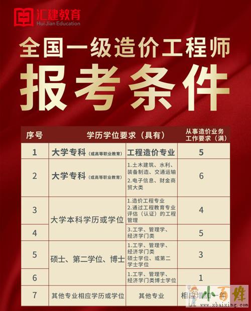 4.已获上述专业博士学位,从事工程造价业务工作满2年。欢迎www.xbaixing.com